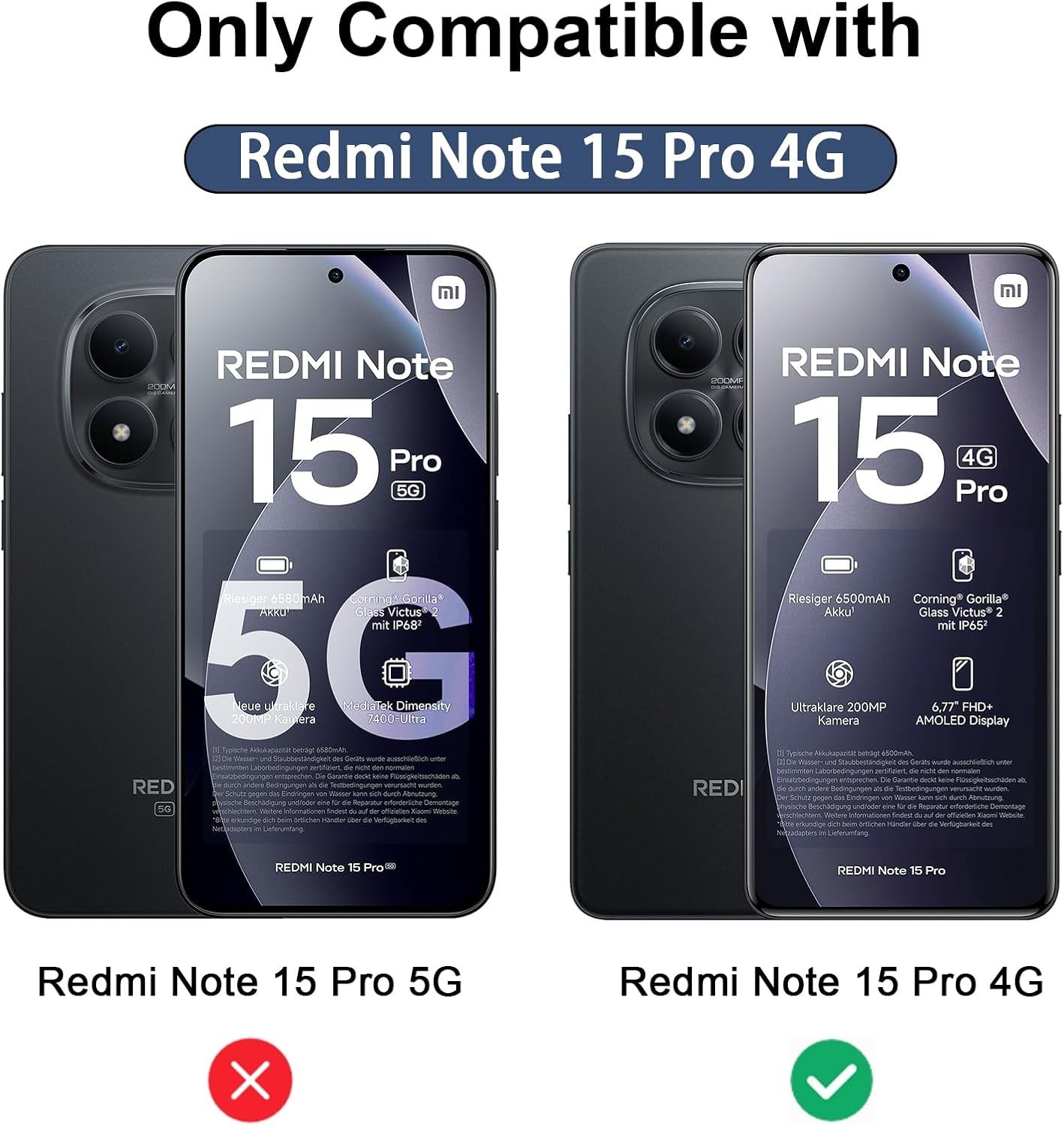 2X 3D Schutzglas (Display + Kamera) für Xiaomi Redmi Note 15 Pro+ 5G Panzerfolie