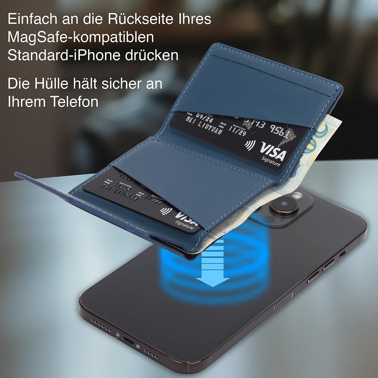Hält auch an Ihrer magnetischen Handyhülle, ohne zu verrutschen! Die Börse aus hochwertigem Kunstleder bietet mit zwei Fächern Platz für bis zu vier Karten - ideal für Kreditkarten, Ausweise und Ihren Führerschein.