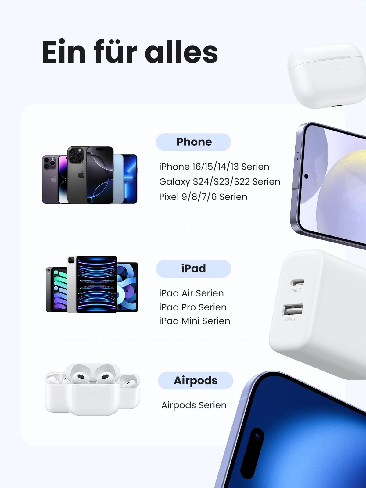 USB C Ladegerät 20W für iPhone 15 16 17 und iPad Pro/Air, 2Pack