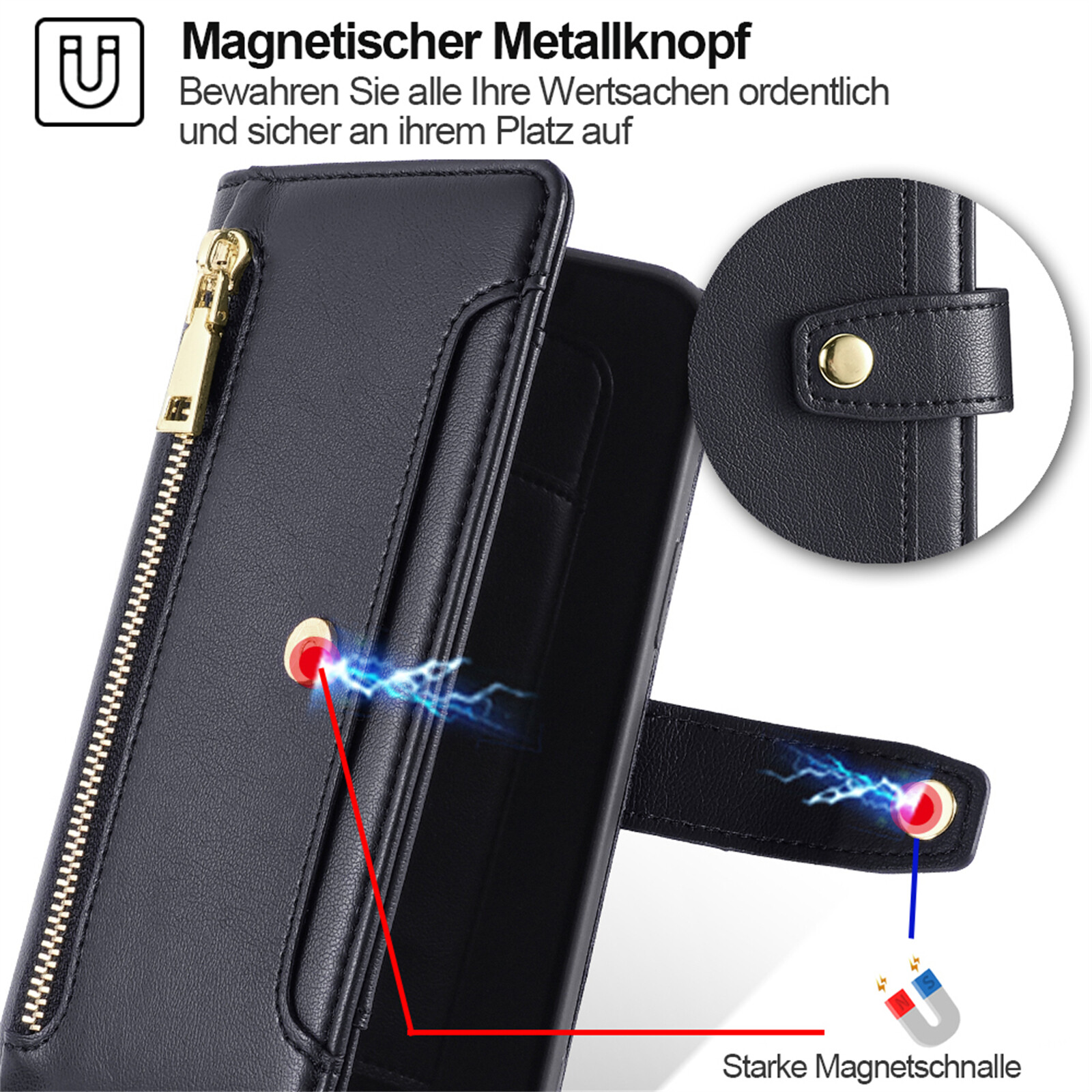Handykette iPhone Hülle mit Band Handyhülle Kartenfächer PU Leder Umhängetasche