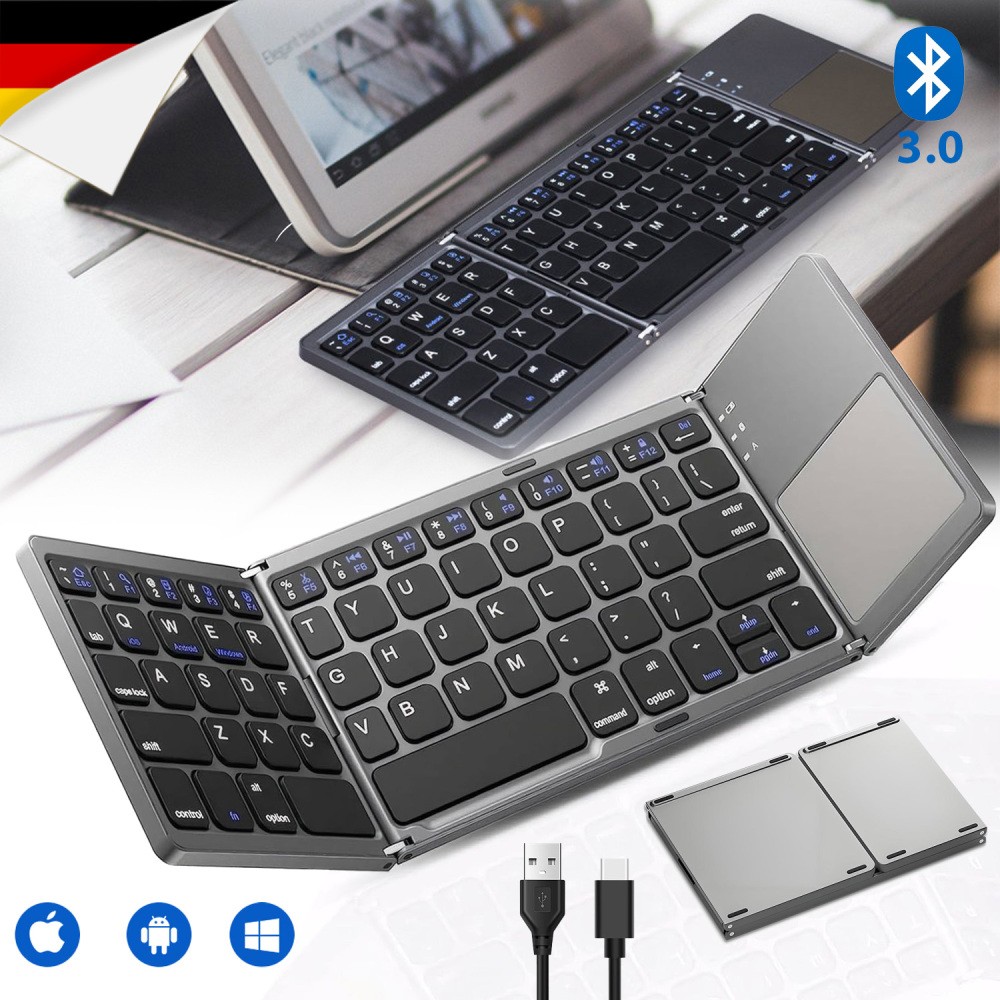 faltbare Mini Bluetooth Tastatur mit Touchpad Keyboard QWERTY